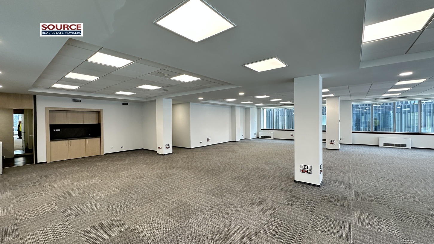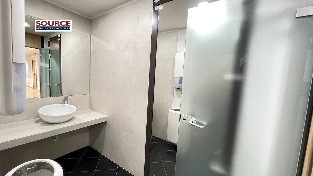 2. Разпределение: 1 голямо Open space помещение, 1 отделно работно помещение, оборудвана кухня, 3 wc Офисът може да бъде изцяло Open space или допълнително преграден според изискванията на Наемателя.