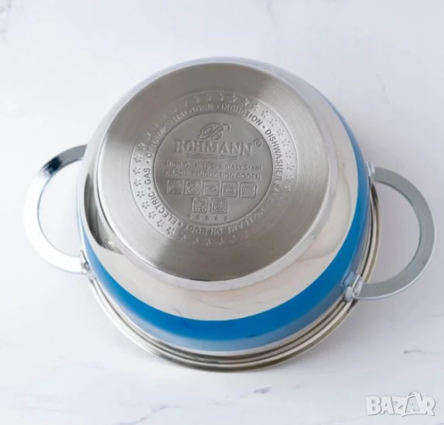 Комплект тенджери Bohmann от 8 части от висококачествена неръждаема стомана в елегантен син дизайн
