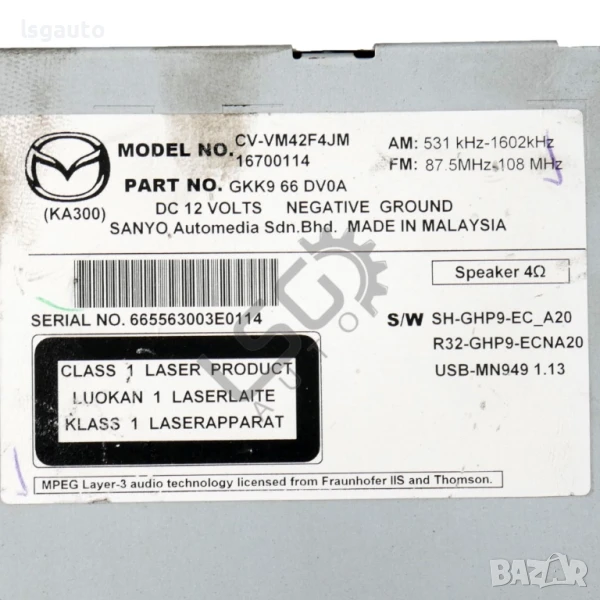 CD плеър Mazda 6 Estate (GJ, GL) 2013-2019 ID:147512