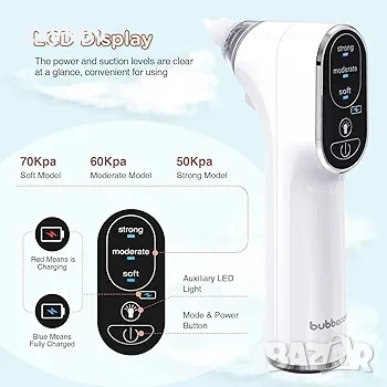 Бебешки назален аспиратор, електрически назален аспиратор с LED лампа