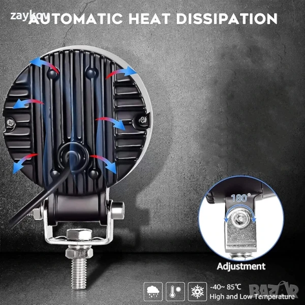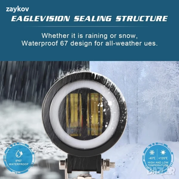 【Високопроизводителна функция】Тази LED работна лампа е с отлични водоустойчиви характеристики, с ниво IP68, 100% прахоустойчива и способна да предпазва от потапяне във вода - повече от 1 м вода за 30 минути; прахоустойчива, удароустойчива, антикорозионна; лесна за монтаж и измиване.