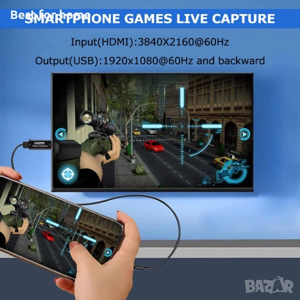 4K HDMI карта за видеозаснемане, Cam Link карта за заснемане на игри, адаптер за аудиозаснемане, HDMI към USB 2.0 устройство за заснемане на записи за стрийминг, излъчване на живо, видеоконференции, обучение, игри (черен)