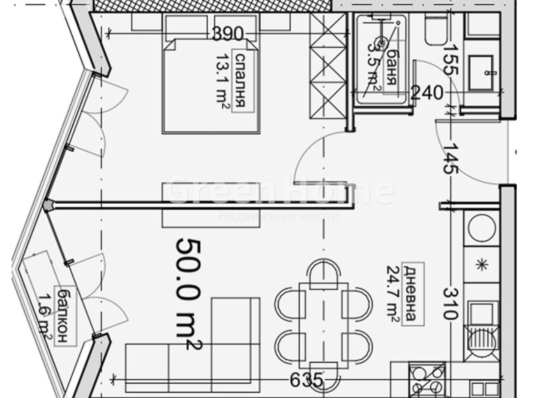 Дневна с кухненски бокс 24,7 кв.м