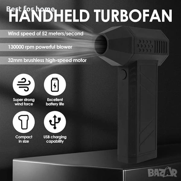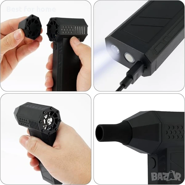 Jet Dry Mini Blower - Преносим турбинен вентилатор 130000 RPM с регулируема скорост и светлина за почистване на автомобили , компютри, клавиатури, камери, дивани, прозорци, растения и премахване на косми от домашни любимци. Може да се използва и като духалка за барбекю.