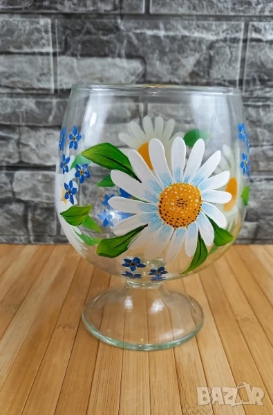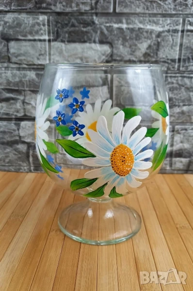 Ръчно рисувана ваза/чаша с маргаритки и незабравки → Обява 50632204