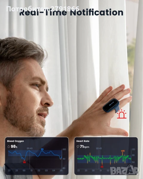 - ПРОСЛЕДЯВАНЕ ПРЕЗ ЦЕЛИЯ ДЕН: Непрекъснато проследяване и записване на нивото на кислород, сърдечната честота и движението всяка минута, непрекъснато използване до 16 часа.