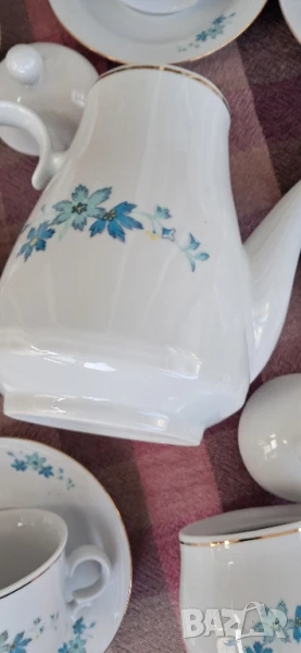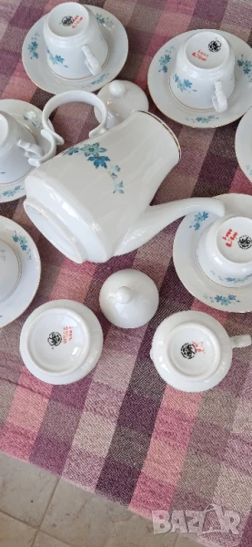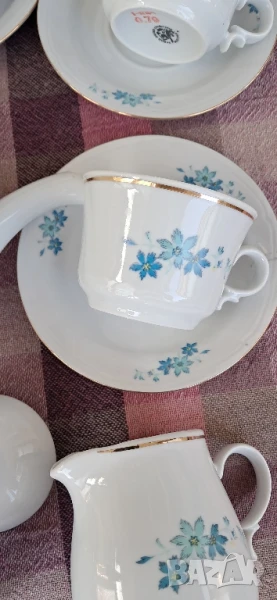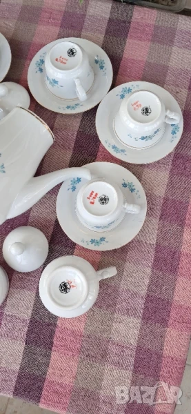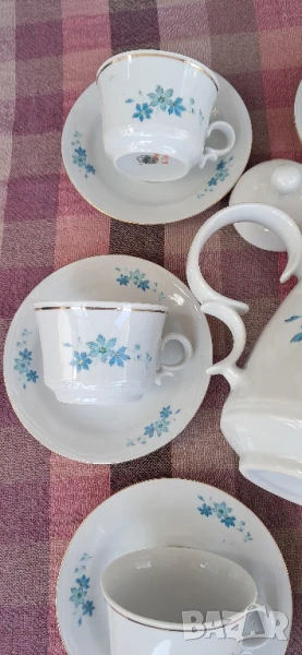 Стари порцеланови чаши, Произход България-завод Дянко Стефанов Разград, състояние видно на снимките (Нови)не са ползвани никога, комплекта се състои от по 6 бр.чаши и чинийки,Кана,захарница,съд за мляко общо 15 бр.Същите са за колекционери на ретро, декор, интериор и по предназначение.Цената не подлежи на коментар .Вис.4 см шир.6 см.Вместимост 0150мл.те4ност до горе.