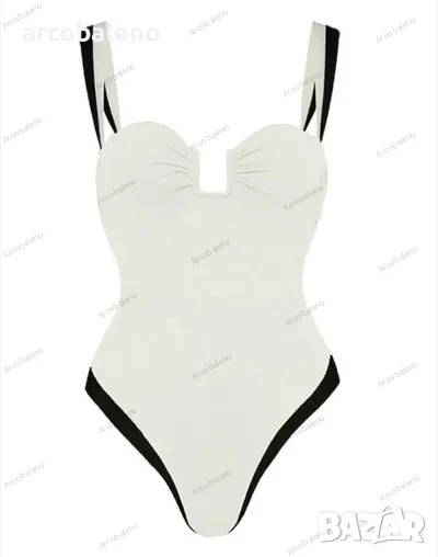Дамски черно-бял семпъл контрастен бански костюм от една част