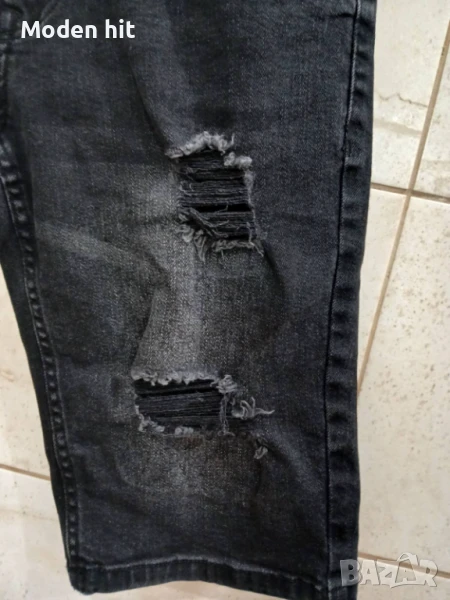 Черни. Външно без следи от употреба. С накъсан ефект, но не са с дупки, от вътрешната страна има парчета дънков плат. Размер по етикет XS.
