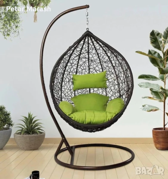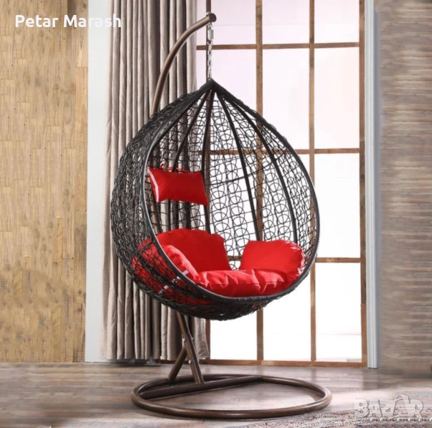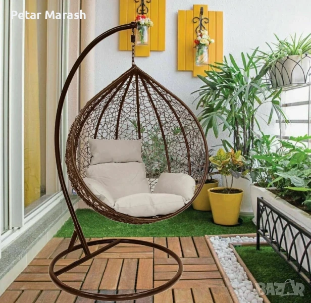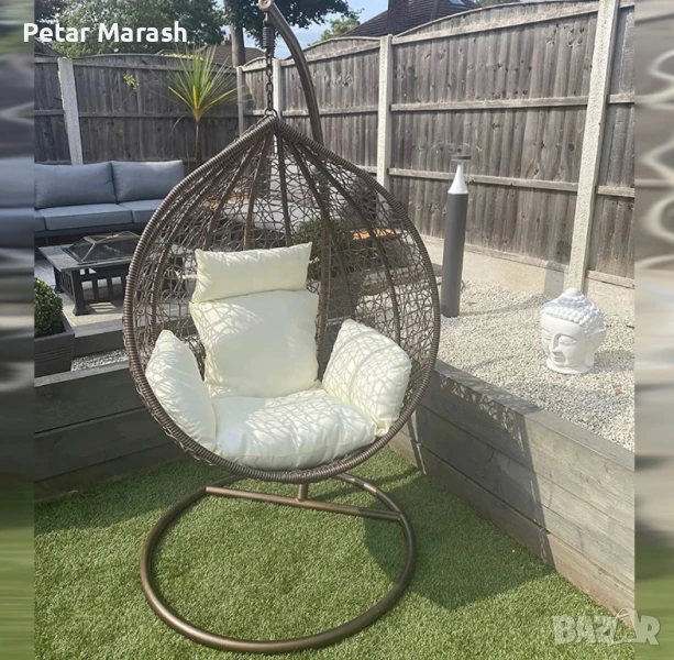 Висящ Ратанов Стол – ГОЛЯМА Градинска Люлка Водоустойчива
