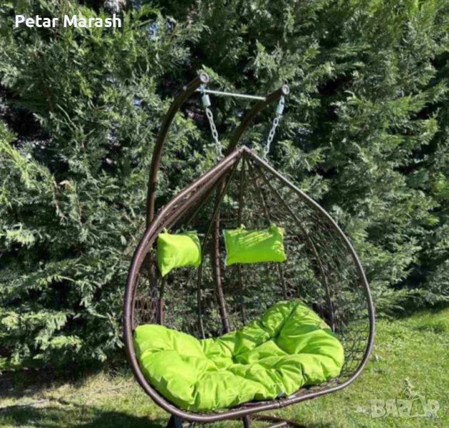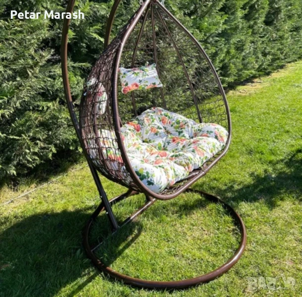 градинска люлка, издържаща до 350 кг. Идеален за двор, градина или тераса, с меки възглавници и модерна визия.