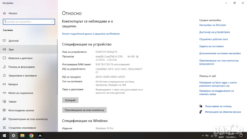 ХА ЧАСТИ Лаптоп MEDION,15,6", RAM 8 gb, procesor i5 win 10 HDD 320 100 % Без матрица е.