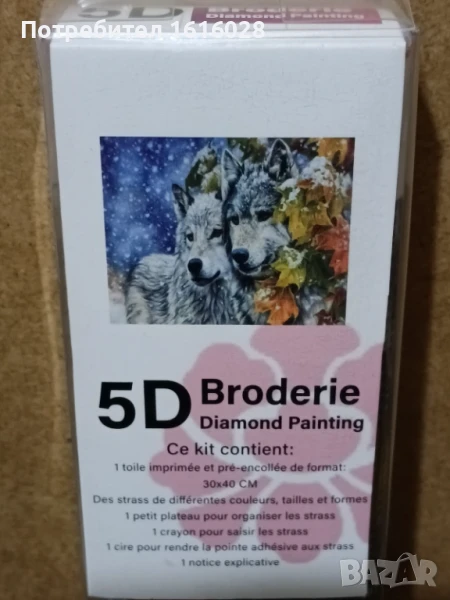 Различни модели диамантени Гоблени.Във всеки комплект се съдържа по 1 отпечатано платно,стрази с различни цветове,1 малък поднос за подреждане на диаманчетата, 1 молив за хващане на диаманчетата,1 восък.Диамантчета се подреждат на определените места,като се следват буквите,знаците,цифрите и цветовете отговарящи на тях.