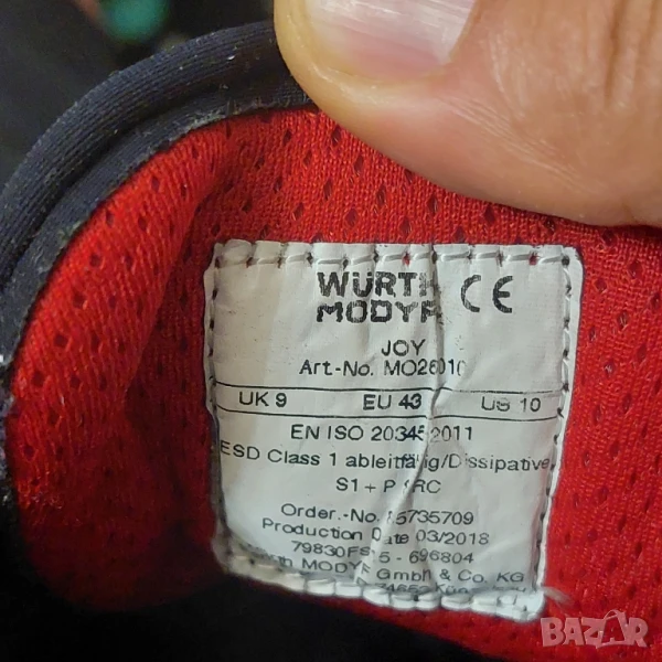 Ширина на стъпалото: 10,5 (стандартна ширина на предпазна обувка)