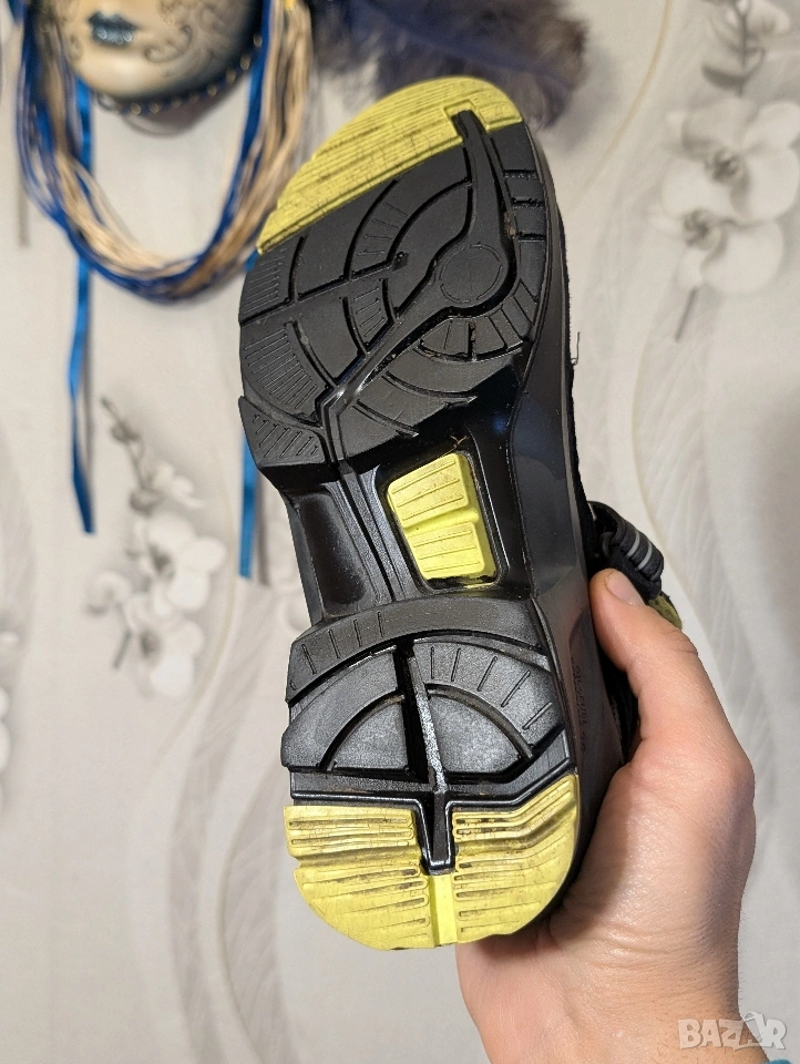 Подметката е изработена от два вида полиуретан с различна плътност, осигуряваща абсорбция на удари и защита от температурни промени.