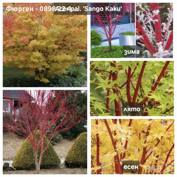 Кората на дървото през зимния сезон е червена,което го прави много интересен, а през лятото става зелен
