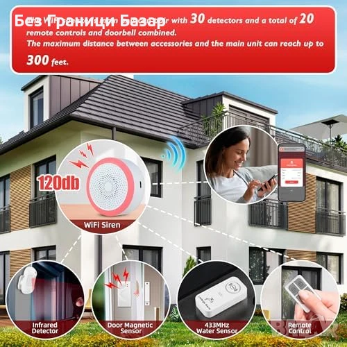 Нова WiFi Алармена Система с Сирена + Сензори и Дистанционно, Tuya App