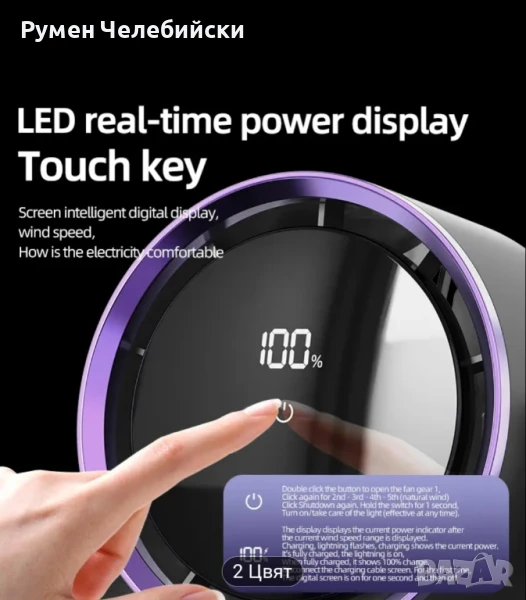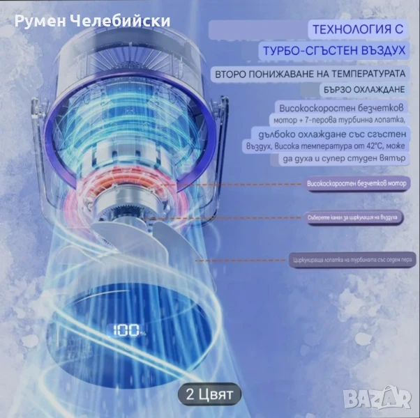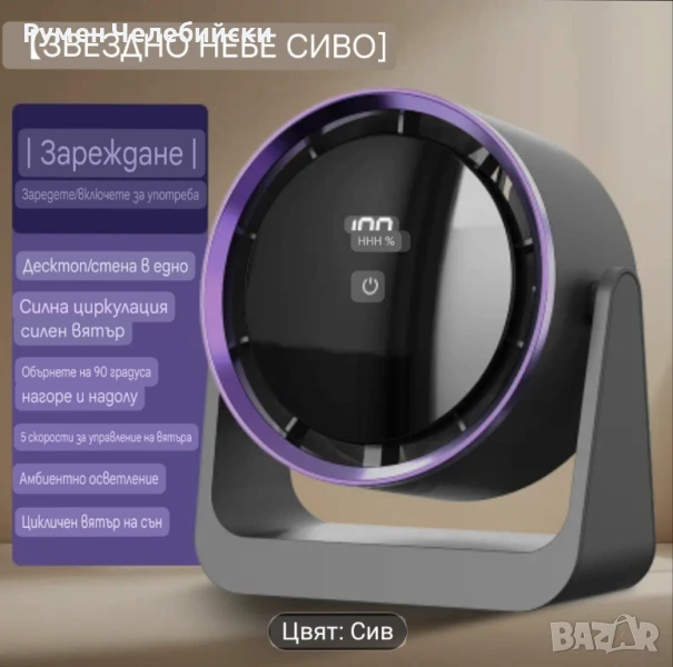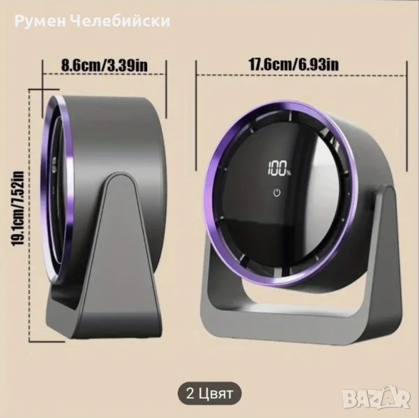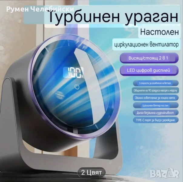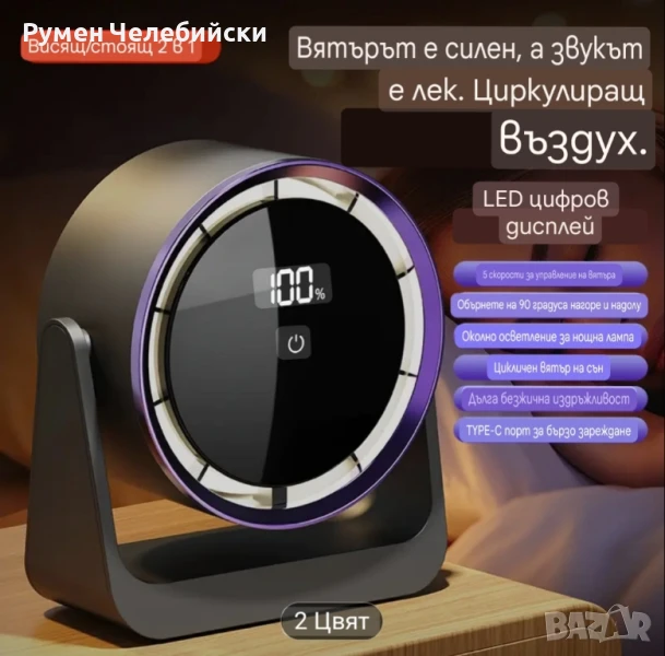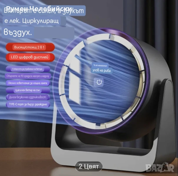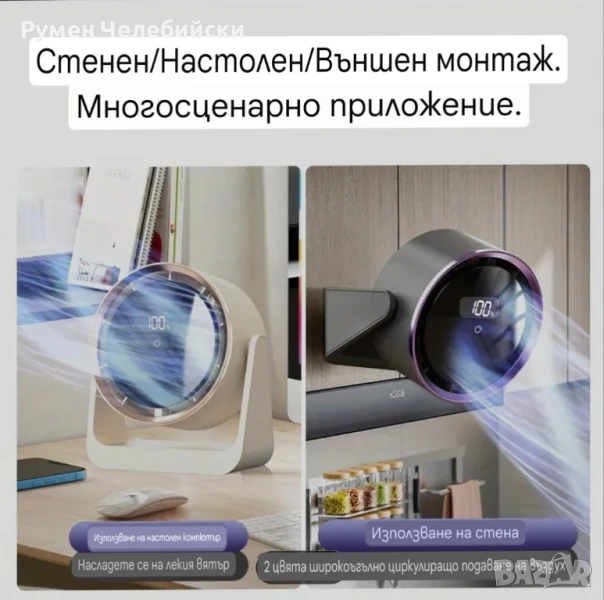 Стилен дигитален Вентилатор с дисплей. Вентилатор за маса или окачване с контрол и регулиране на скоростта с докосване, монтаж на стена, широк ъгъл на въздушния поток, 2000mAh акумулаторна батерия, преносим за работен плот, на открито, у дома, в общежитието, вентилатор за стая в общежитие | Много Модерна Естетика | Вентилатор с акумулаторна батерия.