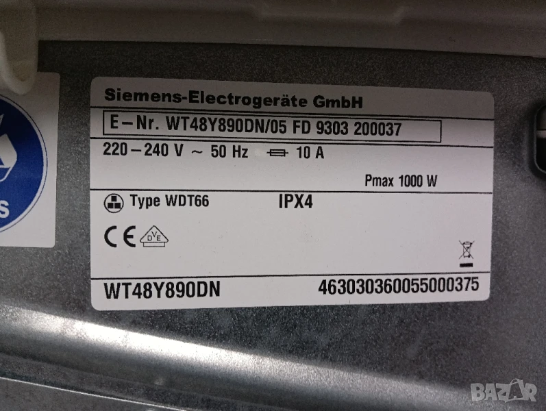 Сушилня с термопомпа Сименс висок клас, 14 програми за сушене, лед дисплей, отложен старт изцяло тъчскрийн управление на бутоните и дисплея, самопочистващ се кондензатор, функция гладене при която дрехите излизат без гънки от сушилнята и др.