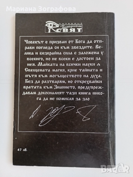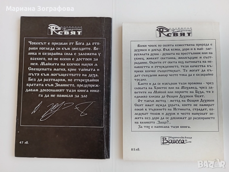 В. "Кръстът на посветения" и " Бог и Сатана", Методи на висшата магия 1995 - Зор Алеф, 1-во издание, изд. къща "Ванеса"