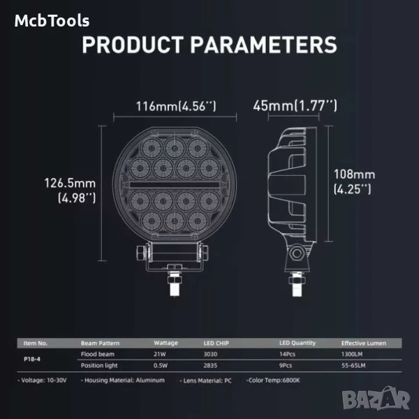 Диоден халоген LED светлини габарит, жълта 12/24V 50W – T458