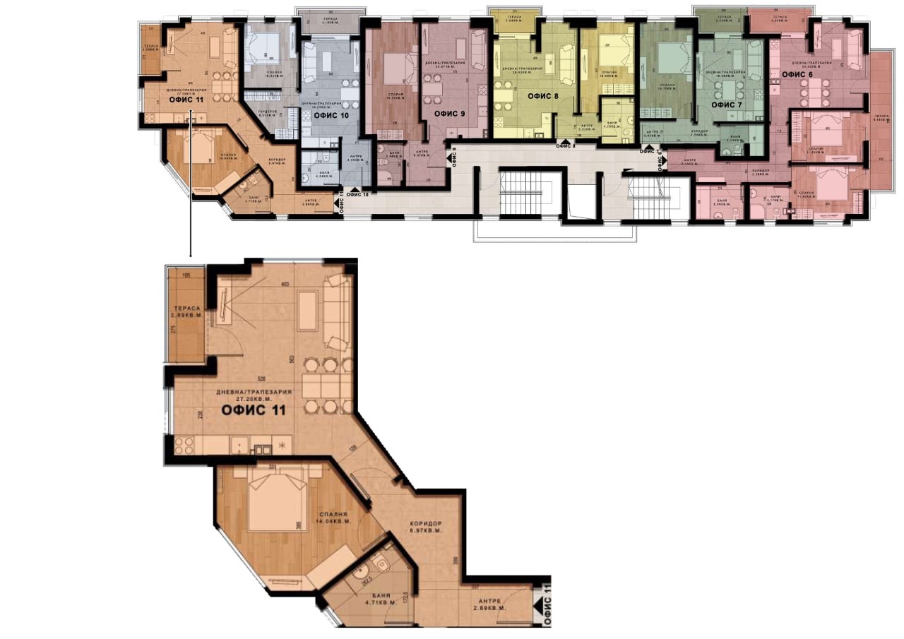 ОФИС 11.Застроена площ 74кв.м.Изключително луксозна сграда с очакван АКТ 16 - до март 2026г.) с мазилка със специални лъскави, искрящи на дневна светлина, нишки. Доказан строител, със завършени бутикови обекти, строи сградата със собствени средства.Представяме Ви имот със статут на офис, но изграден като апартамент в малка елегантна и модерна сграда с 15 апартамента и 11 офиса, изключително луксозно изпълнение, до парк Въртопо и до метростанцията. Има следното разпределение: СВЕТЪЛ коридор с прозорец, от който се влиза в СВЕТЛА баня и тоалетна с прозорец, разчупена дневна със светла кухня и с излаз на балкон и спалня. Мястото е неповторимо поради непосредствената близост до парка и същевременно до метри от пазара. Към апартамента може да бъде закупено паркомясто на допълнителна цена. Огледи се правят САМО В РАБОТНИ ДНИ МЕЖДУ 9 и 17.00ч.!В същата сграда се продават два имота със статут на офиси, но изградени като апартаменти и още няколко тристайни апартаменти на цени от 2200 до 2400евро на кв.м., в съседната сграда - два огромни мезонета. За повече информация и огледи, се свържете с Елена Цветанова на тел.0889295954