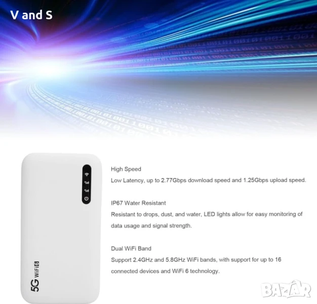 Висока скорост и ниска латентност Мобилната точка за достъп поддържа вашите устройства свързани с висока скорост. Изпитайте скорости на изтегляне до 2.77 Gbps и скорости на качване до 1.25 Gbps, 15 пъти по-бързо от 4G, без прекъсвания и забавяния.