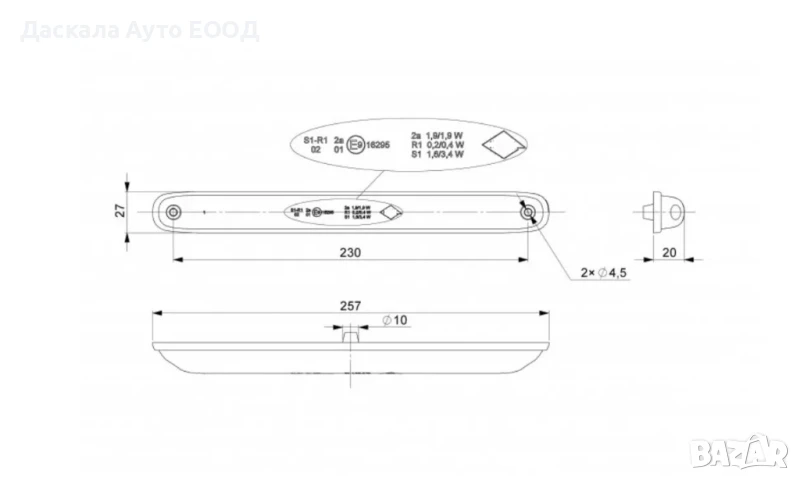 1бр. ЛЕД LED стоп с три функции тип дълъг габарит , Полша
