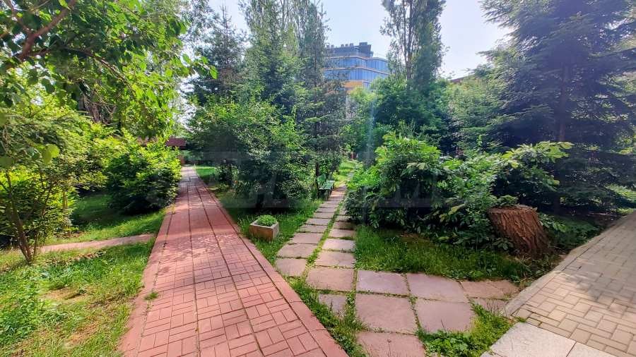 Сградата е добре поддържана, с два асансьора и отлични общи части. Дворът предлага истински комфорт за цялото семейство озеленена градина, детска площадка, фитнес зона на открито и беседка за отдих или игра. Атмосферата е спокойна, с възможност децата да играят безопасно и на чист въздух.