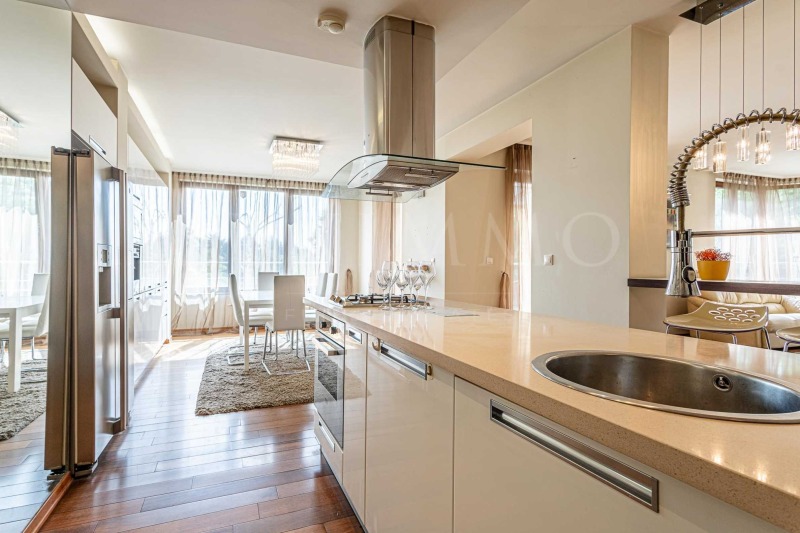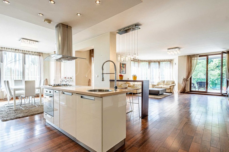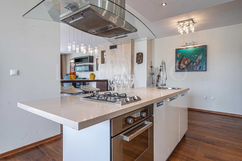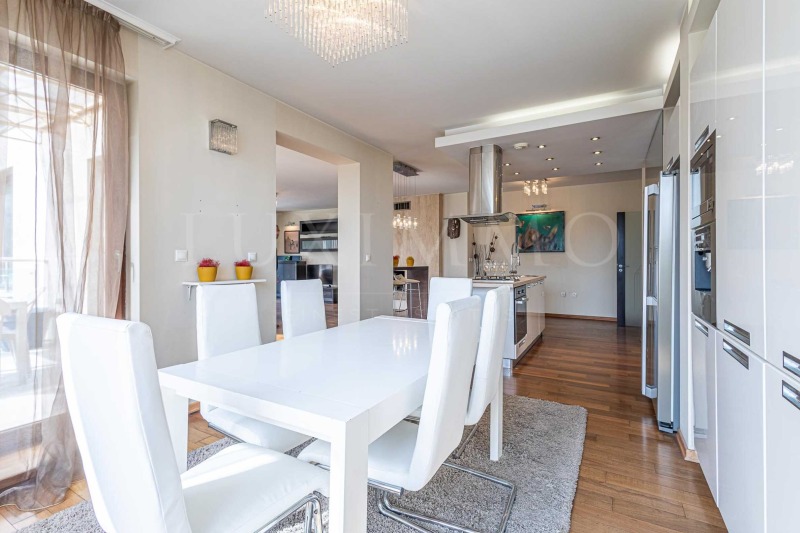 Апартаментът е разположен на 4-ти, 5-и и 6-и етажи от 6-етажна сграда и има обща площ 749 кв.м. Основният акцент в жилището - панорамни прозорци във всички стаи и тераси с обща площ 420 кв.м, с разкошната гледка, градинско озеленяване, което допринася за уединение и връзка с природата. Имотът е с три изложения - изток, запад и юг.
