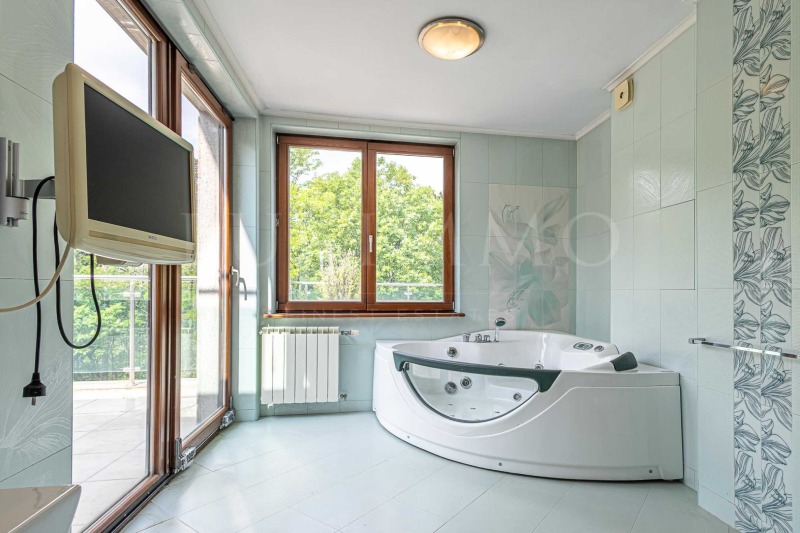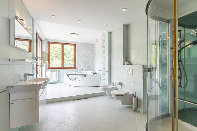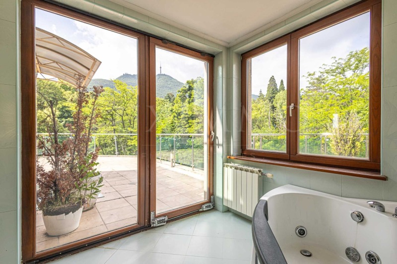 Баня с тоалетна, с джакузи и душ кабина, от които се разкриват панорамни гледки към Витоша;