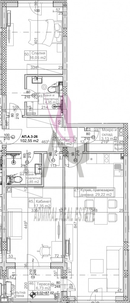 ТРИСТАЕН апартамент в новостроящ се затворен комплекс м-т Манастирски рид. Недвижими имоти 'Admiral Real Estate' Ви предлага за продажба тристаен апартамент с площ от 127 кв.м, разположен на етаж 3 от 7 в модерна новострояща се сграда в тихия и озеленен район на м-т Манастирски рид. Разпределение : входно антре, всекидневна с кухненска част, две спални, две санитарни помещения, килер, тераса. Апартаментът е с южно изложение, което гарантира топлина и естествена светлина през целия ден. Комплексът ще бъде затворен тип, с контролиран достъп чрез чип система, осигуряваща спокойствие и сигурност. Ще разполага с огромна градина от 4 дка, зелени площи, детски кътове, зони за отдих, както и с модерна архитектура и функционално разпределени помещения. Има възможност за покупка на паркоместа и гаражи. Отлична локация, съчетаваща спокойствие сред природа с бърз и лесен достъп до централната част на града и всички важни точки на Варна. Имот, подходящ както за лично ползване, така и като инвестиция. За повече информация и огледи : Валентина Игнатова тел. 0878 699 443 Код на офертата: 229193