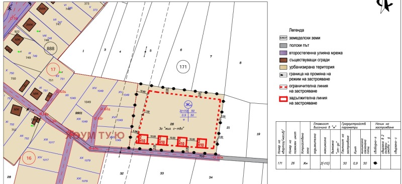 В РЕГУЛАЦИЯ ! ! ! РАЗРЕШЕНИЕ ЗА СТРОЕЖ ! ! ! Представяме на Вашето внимание парцел с правилна форма, в регулация с възможност за реализиране на проект с 8 самостоятелни, двуетажни къщи. Парцелът се намира в село Петърч, в непосредствена близост до къщите в селото. За повече информация и оглед, обади се и цитирай този код:128994