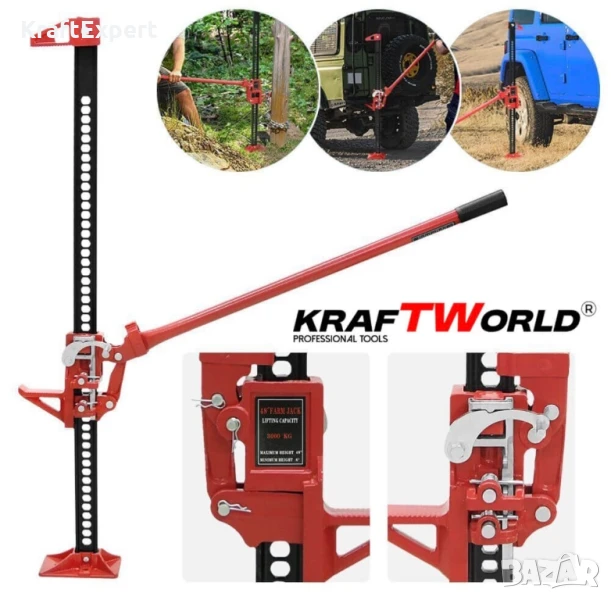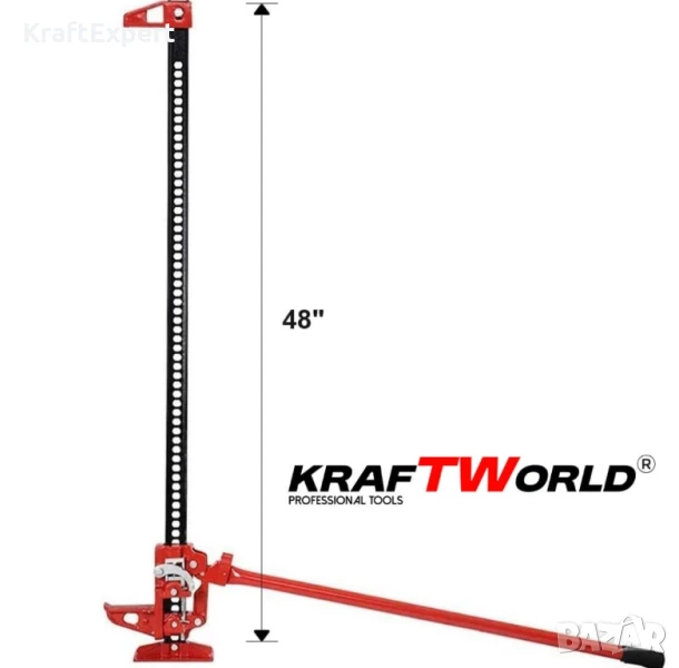 Този високоповдигащ крик тип „латерна“ от KraftWorld Pro е създаден за тежки офроуд условия, селскостопански и строителни приложения. С товароносимост от 3 тона и максимална височина на повдигане от 121.92 см, този крик е незаменим инструмент за всяка екстремна ситуация.