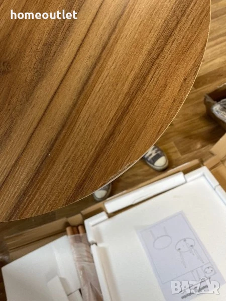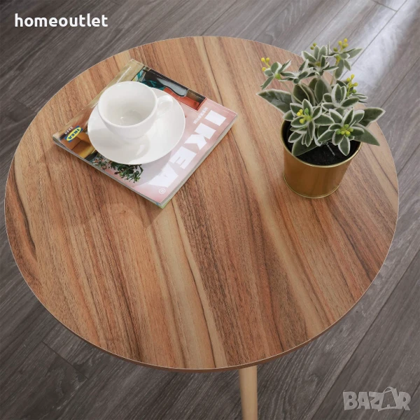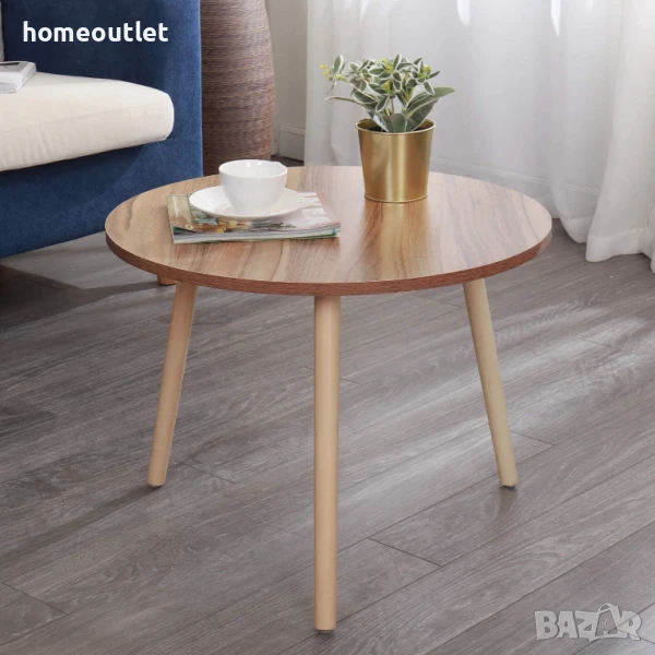 Минималистична кръгла дървена масичка за кафе в цвят дъб