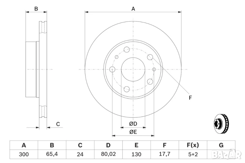 Диск спирачен преден дeсен/ляв за CITROEN JUMPER I,JUMPER II; FIAT DUCATO; PEUGEOT BOXER № F2007V