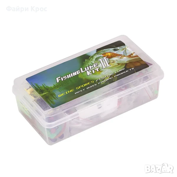 Кутия за риболов съдържаш 300 части. Комплекта съдържа всякакви видове по големина и грамажи изкуствени примамки като воблери, блесни, червеи, жаби, силиконово примамки, спининг, куки и други.