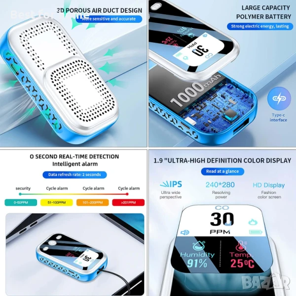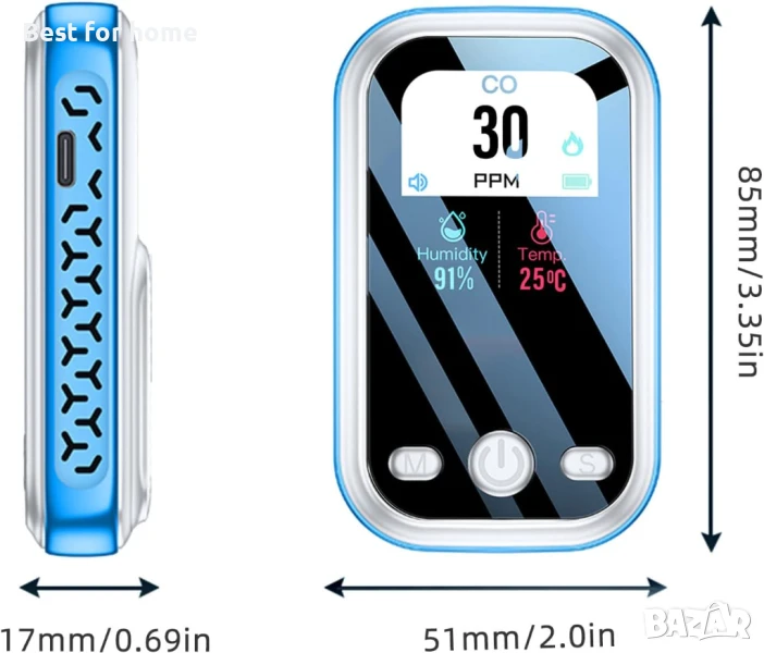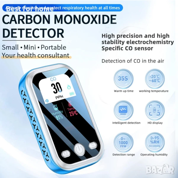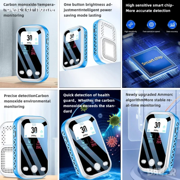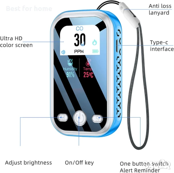 【МИНИ 3-В-1 ДЕТЕКТОР ЗА ВЪГЛЕРОДЕН ОКСИД】МИНИ 3-в-1 детектор за въглероден окис може точно да открие текущата концентрация на CO, температура и влажност във въздуха. Позволява ви да разберете по-ясно качеството на въздуха и да защитите здравето си и вашето семейство. Дизайнът с мини връзка го прави много удобен за носене или окачване навсякъде.