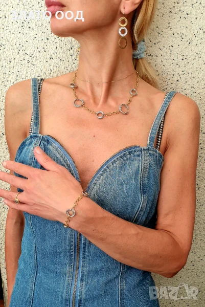 Златен сет от колие, гривна и обеци 14К → Обява 50642578