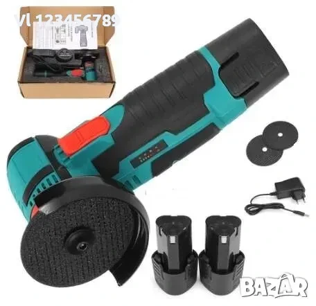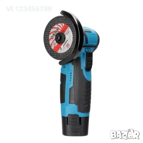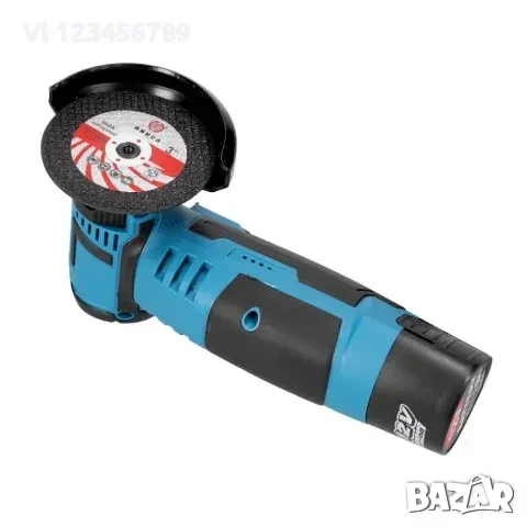Мини Акумулаторен безчетков ъглошлайф с 2 диска в комплекта, с диаметър 76 мм/ за метал, дърво и шлайфане /. Идеален за рязане и шлайфане на дърво, метал, пластмаса и други материали. Има ергономична ръкохватка. Разполага със светодиод на дръжката с който показва нивото на заряд на батерията. Машината е лека, компактна и удобна за работа и с една ръка.