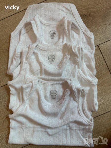 Комплект от 3 бели бебешки бодита, размер 86см → Обява 50643660