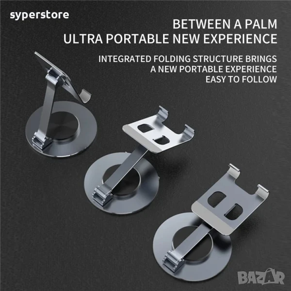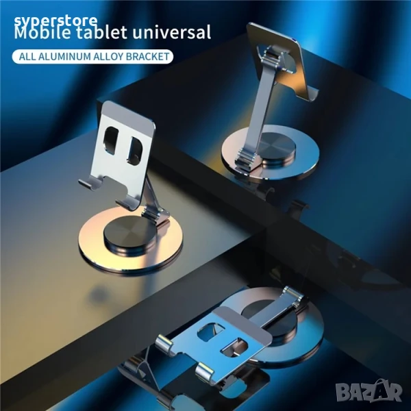Стилна стойка, изцяло метална, за телефон за Бюро Маса.Сгъваема стойка за телефон с подложка против хлъзгане, с завъртане на 360 гр. и регулиране наклона на телефона.