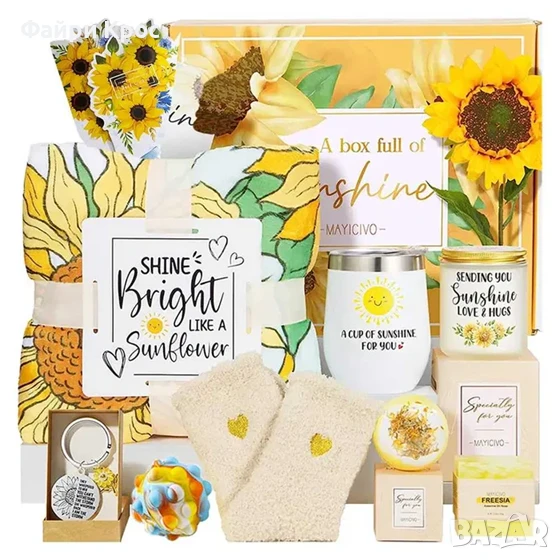 Представяме ви перфектния начин да внесете слънчева радост в деня на вашия любим човек! Независимо дали отбелязвате рожден ден, юбилей, специален празник или просто искате да подарите лъч светлина, нашият Слънчев Комплект за Релакс и Щастие е най-добрият избор. Защото всяка жена заслужава момент на топлина, уют и внимание. Покажете своята грижа с този жизнерадостен и вдъхновяващ подарък!