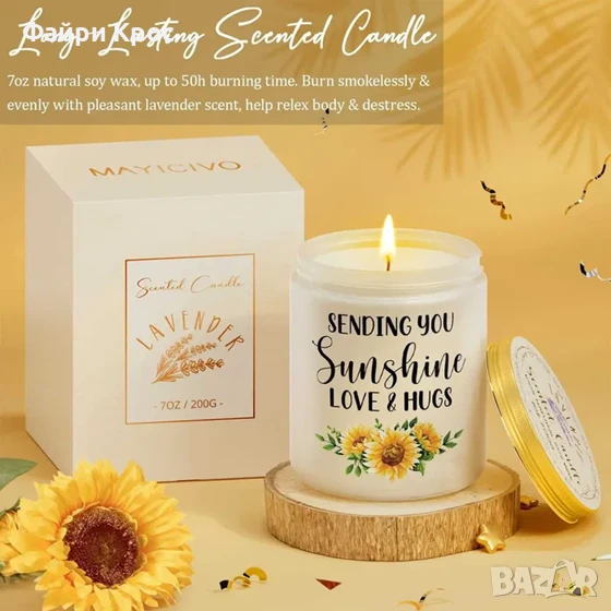 2. Ароматна свещ със свеж аромат, създаваща спокойна атмосфера.