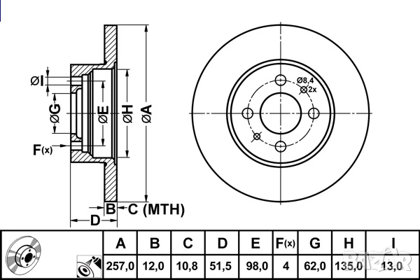 Диск спирачен преден дeсен/ляв за FIAT ARGENTA,REGATA,RITMO;LANCIA DELTA I,DELTA II,PRISMA № F2041P