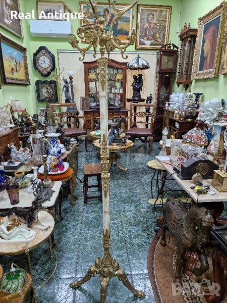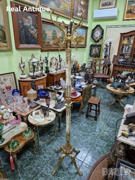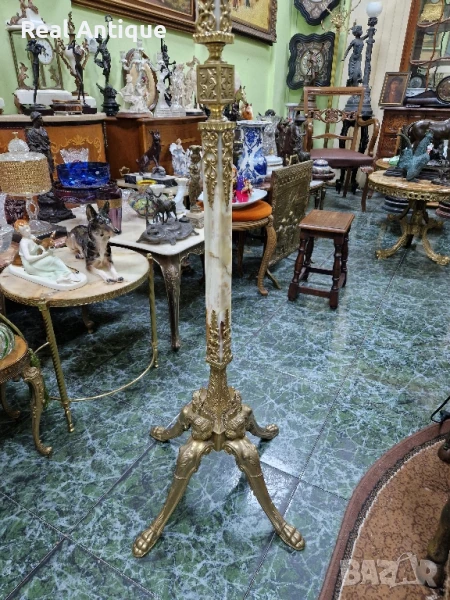 Уникална антикварна белгийска подова закачалка от бронз и оникс → Обява 50644580