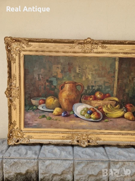 Продавам огромна изключително красива антикварна авторска майсторска картина масло върху платно в перфектно състояние без никакви забележки. Размери 123 см на 83 см. Прекрасно допълнение към интериора на Вашия дом офис вила ресторант хотел. Подходяща и за подарък. Работя с всички куриери. Отговарям бързо.