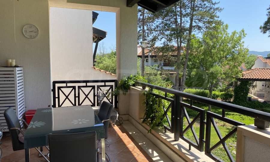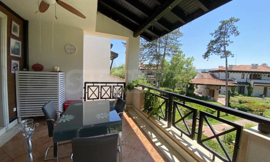 Жилището има високи тавани и светли помещения, елегантно обзаведено и комфортно оборудвано, подходящо е както за лично ползване, така и за инвестиция. От верандата и стаите се открива красива гледка към озеленените и цветни градини.