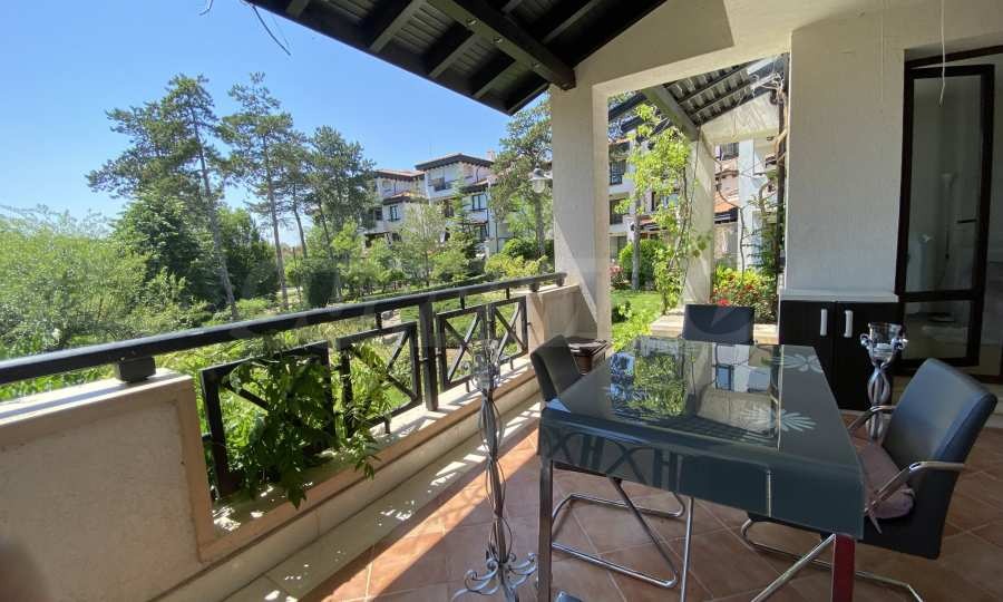 Имотът е разположен на 1-ви етаж, с приятни гледки към вътрешния парк и зеленината на комплекса.