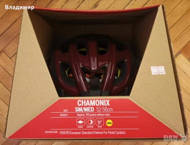 Чисто нова неразопакована каска за колоездене Specialized Chamonix MipsРазмер: S/M 52-56Цвят: Gloss Maroon - прилича на бордоЗа София може да се види на място. За проба имам същата, но спукана, тъй като не искам да разопаковам тази.